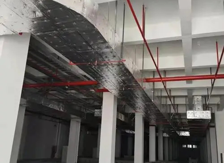 絕熱玻璃棉內(nèi)部纖維細(xì)長能很好的禁錮空氣使之無法流動,包裹在通風(fēng)風(fēng)管外部,杜絕了熱空氣對防排煙系統(tǒng)金屬管道完整性的破壞,起到耐火和隔熱的效果,達(dá)到防排煙風(fēng)道整體的系統(tǒng)設(shè)計(jì)。